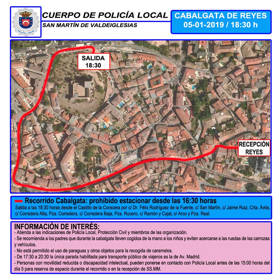La cabalgata saldrá del Castillo de la Corecera, sobre las 18:30 h., irá por las calles San Martín y Jaime Ruiz hasta llegar a la travesía principal y finalizará en la Plaza Real. Allí habrá instalado un belén viviente y recibirán a todos los niños y niñas para confirmar sus peticiones.
