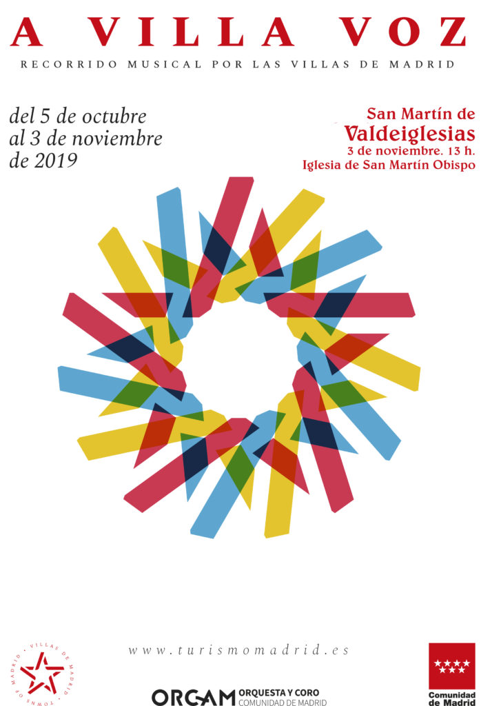 octubre 1, 2019‘A Villa Voz’ es una innovadora iniciativa de turismo cultural que aúna música clásica y promoción del turismo. Se trata de un ciclo de conciertos impulsado por la consejería de Cultura y Turismo del Gobierno regional, gestionado por la Fundación Orquesta y Coro de la Comunidad de Madrid (Fundación ORCAM) que se celebrará del 5 de octubre al 3 de noviembre en las once villas de Madrid. Nuestra localidad cerrará este ciclo con un concierto, el 3 de noviembre, a las 13 h. en la iglesia de San Martín de Obispo. La entrada es gratuita.