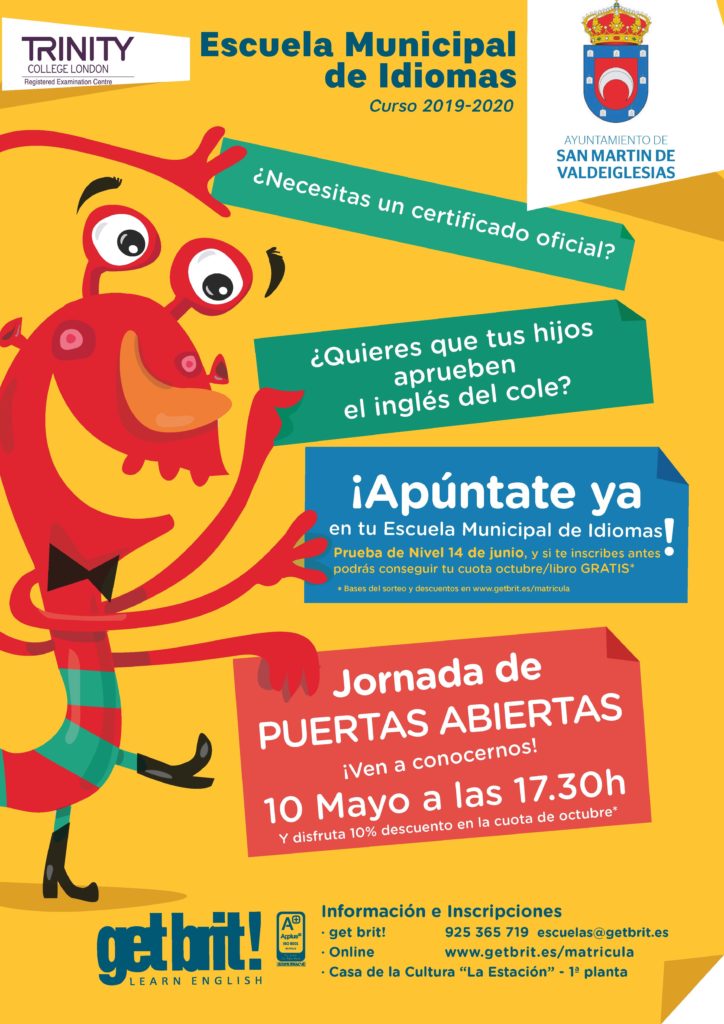 La Escuela Municipal de Idiomas de San Martín de Valdeiglesias abre el periodo de preinscripciones para nuevos alumnos que deseen aprender inglés el próximo curso escolar. La reserva de plaza para los alumnos que ya estén inscritos, se realizará directamente, a través del profesor/a.