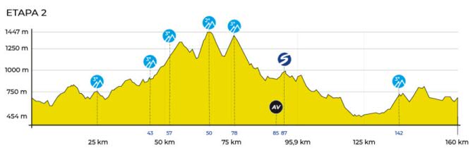 Esta segunda etapa tiene un recorrido de 164,5 kms. Es la más dura, con cinco puertos de 3ª categoría, por lo que puede ser a etapa más determinante de la Vuelta.