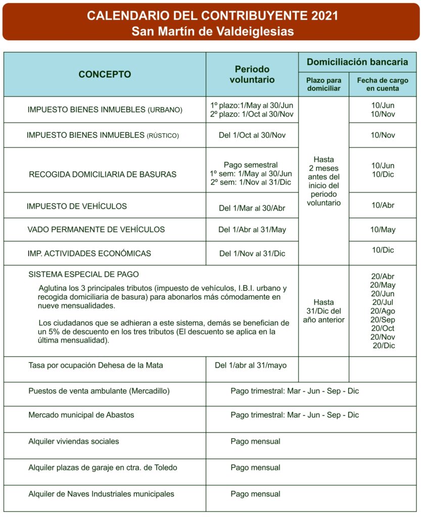 Domiciliación bancaria: Fecha de cargo en cuenta para los recibos domiciliados: el 10 de junio y el 10 de diciembre. (El plazo para domiciliar los recibos es de 2 meses antes del inicio del periodo voluntario).