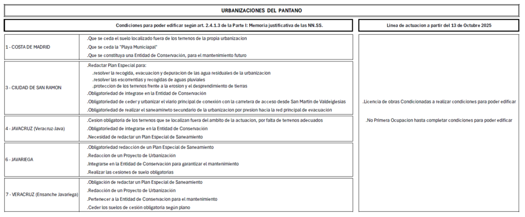 -Las primeras ocupaciones o funcionamiento solo se otorgarán cuando para cada urbanización se vayan resolviendo los condicionantes impuestos por las NNSS (se adjunta pdf con cuadro resumen).