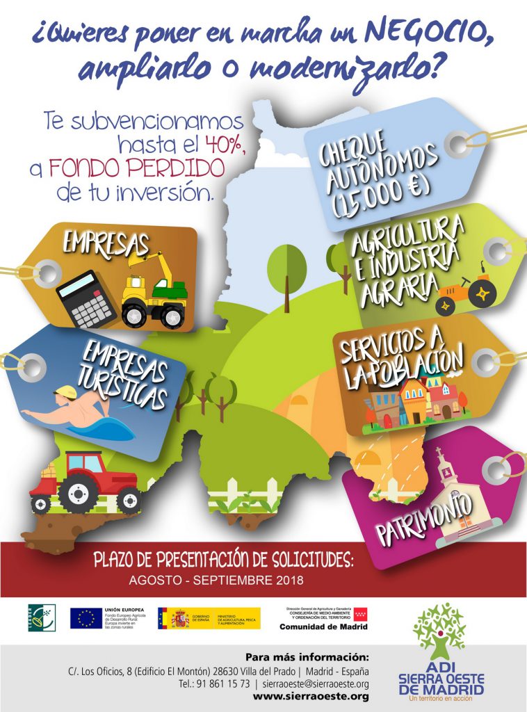 agosto 2, 2018La asociación ADI Sierra Oeste, a la que pertenece San Martín de Valdeiglesias, ha abierto el plazo de solicitudes para solicitar una ayuda económica dentro del programa LEADER de desarrollo rural. El objetivo es diversificar la economía y mejorar la calidad de vida en la Sierra Oeste de Madrid.
