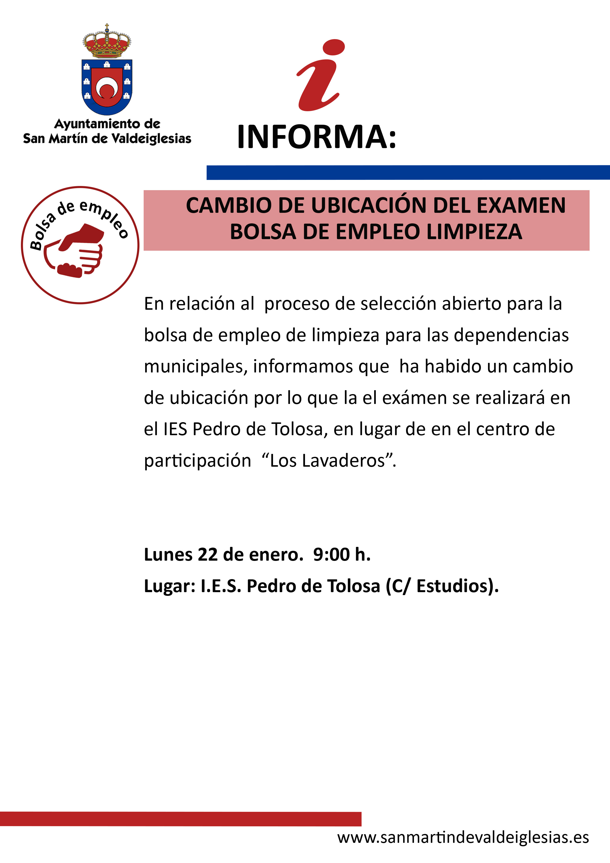 - Bolsa de Empleo para Técnico de Administración General (A1). Publicado anuncio en el BOCM de 16/mayo/2025. Bases en la sede electrónica del Ayuntamiento de San Martín de Valdeiglesias.