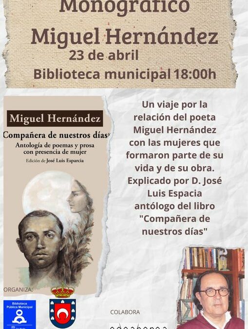 abril 25, 2024La biblioteca municipal celebra el día hoy 23 de abril, el día del libro con una ponencia dedicada al poeta Miguel Hernández, que da nombre al centro de lectura de nuestra localidad.