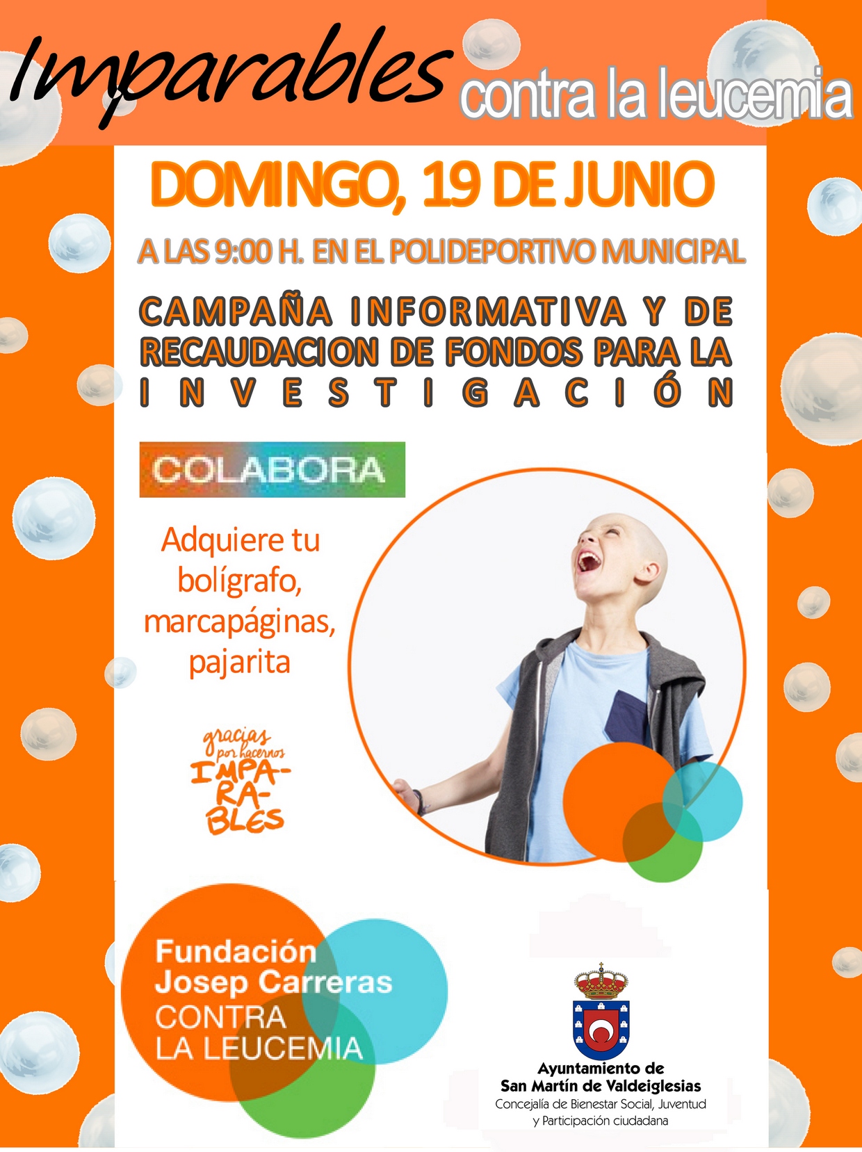 junio 22, 2016Será este domingo, dentro de la Jornada de Padres e hijos del Patronato Municipal de Deportes, donde la concejalía de Participación Ciudadana instalará un punto de información sobre la Fundación en el que los vecinos podrán adquirir gafas, abanicos, parajitas, pañuelos… Todo lo recaudado irá destinado a la investigación contra la Leucemia.
