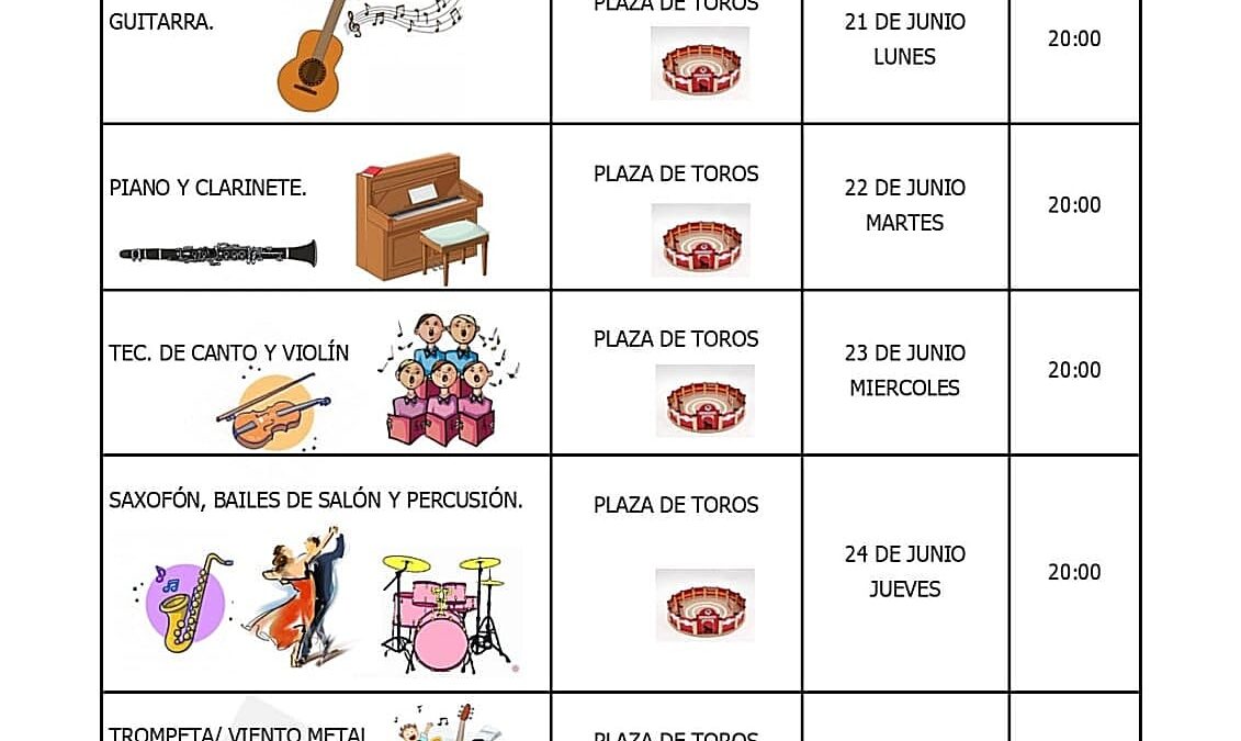 - TÉCNICAS DE CANTO Y VIOLÍN: 23 de junio de 2021. 20 h. Plaza de toros.