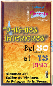 “Paisajes interiores” exposición de los alumnos deltaller de pintura de Pelayos de la Presa. Del 30 al 13 de junio en la Sala de exposiciones de“La Estación”.