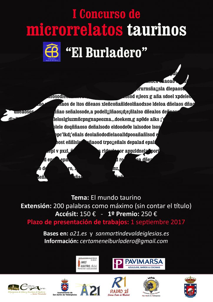 julio 25, 2017El mundo del toro y de la literatura se han unido para convocar el primer concurso de microrrelatos taurinos «El Burladero» una propuesta cultural con la que los organizadores quieren promover la creación literaria y la afición taurina.