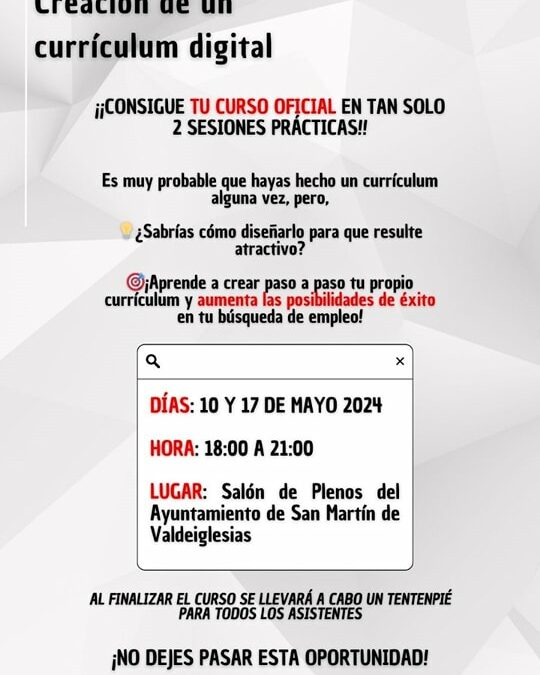 abril 29, 2024La asociación Sierra Oeste Joven, dentro de la iniciativa Madrid Aula Digital, organiza un taller para aprender a crear un currículum digital.