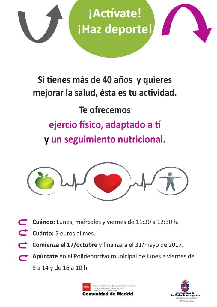 octubre 13, 2016- El Ayuntamiento pone en marcha una nueva actividad para promover la salud entre los mayores de 40 años, que ofrece ejercicio físico y seguimiento nutricional personalizado.