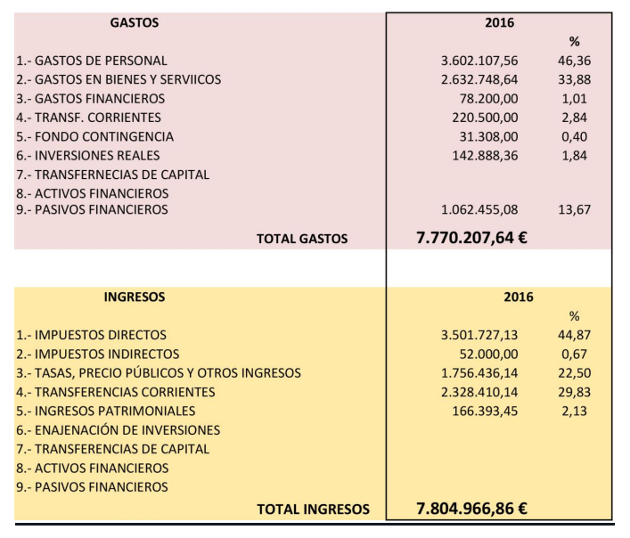 - Los presupuestos municipales están condicionados por el pago de los préstamos a los proveedores, que ya han terminado el periodo de carencia y que suponen un 13,67% del presupuesto total: más de 1 millón de euros.