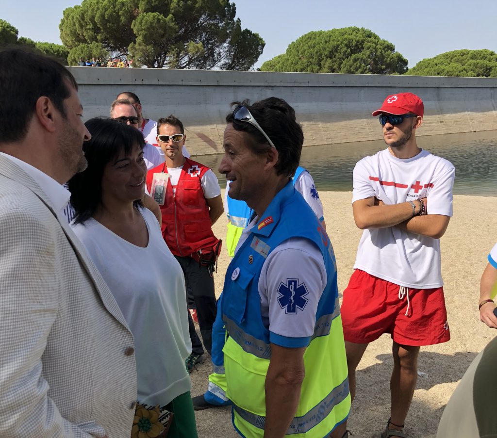 La alcaldesa, ha acompañado al presidente de la Comunidad de Madrid, Ángel Garrido, que ha estado en la playa del Muro esta mañana para conocer de primera mano este dispositivo. Además de las intervenciones, desde que se puso en marcha el pasado 16 de junio, ha llevado a cabo cerca de 800 acciones preventivas mediante consejos para el baño seguro, recomendaciones para proteger la salud o la retirada de objetos peligrosos.