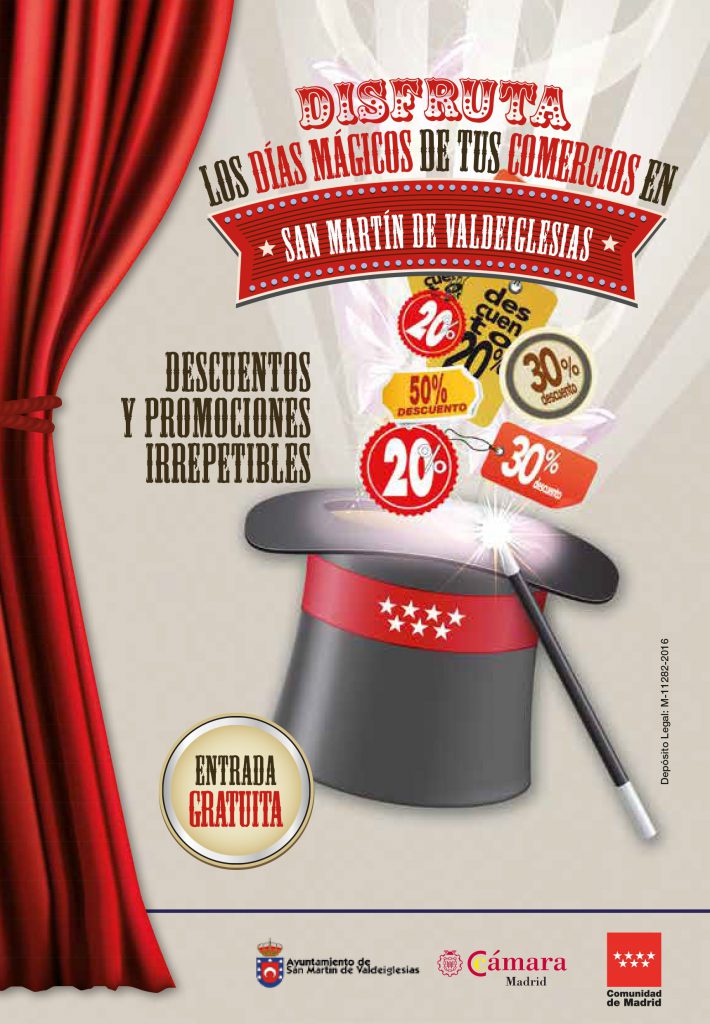 junio 26, 2017La campaña «Los días mágicos del comercio» llega a San Martín de Valdeiglesias. El próximo 1 de julio 18 establecimientos ofrecerán descuentos y promociones especiales, al mismo tiempo que se realizarán espectáculos de magia en varios puntos de la localidad.