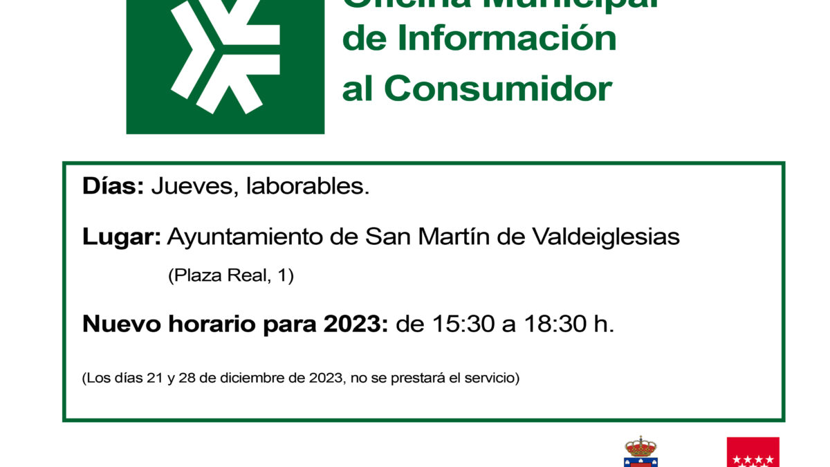Recordamos que hasta el mes de enero de 2024 el servicio de atención al consumidor se prestará los, jueves, hasta el 14 de febrero, en horario de 15:30 a 18:30 h. en el Ayuntamiento, no siendo necesaria la concertación de cita previa. (Los días 21 y 28 de diciembre no habrá servicio).