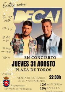 Entradas: 12 € Venta anticipada. 18 € en taquilla. Venta de entradas anticipadas en el Ayuntamiento.