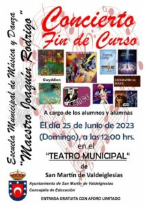 Cartel del concierto.  Gratuito pero con entrada debido al aforo limitado. Las entradas se recogen en la Escuela de Música.
