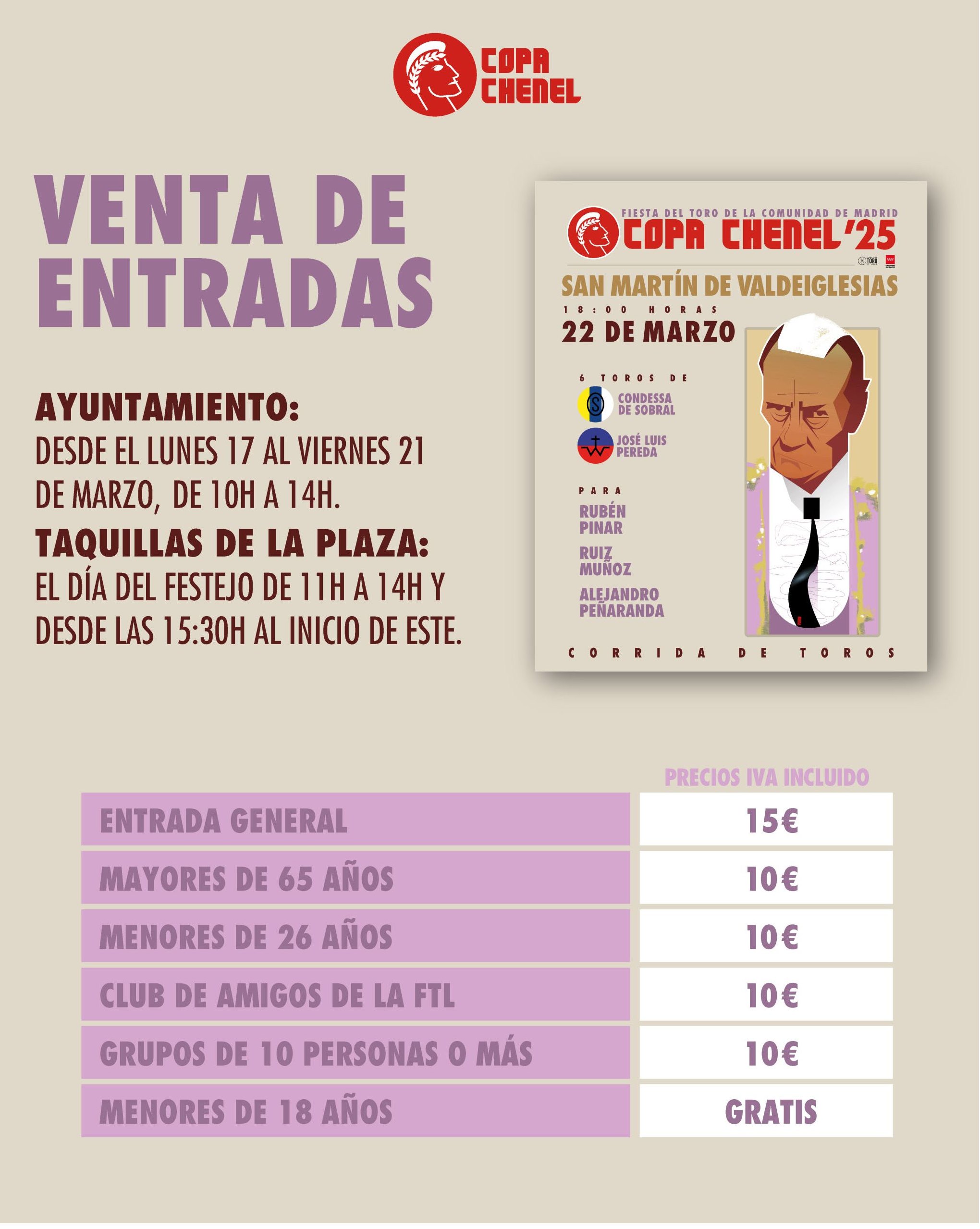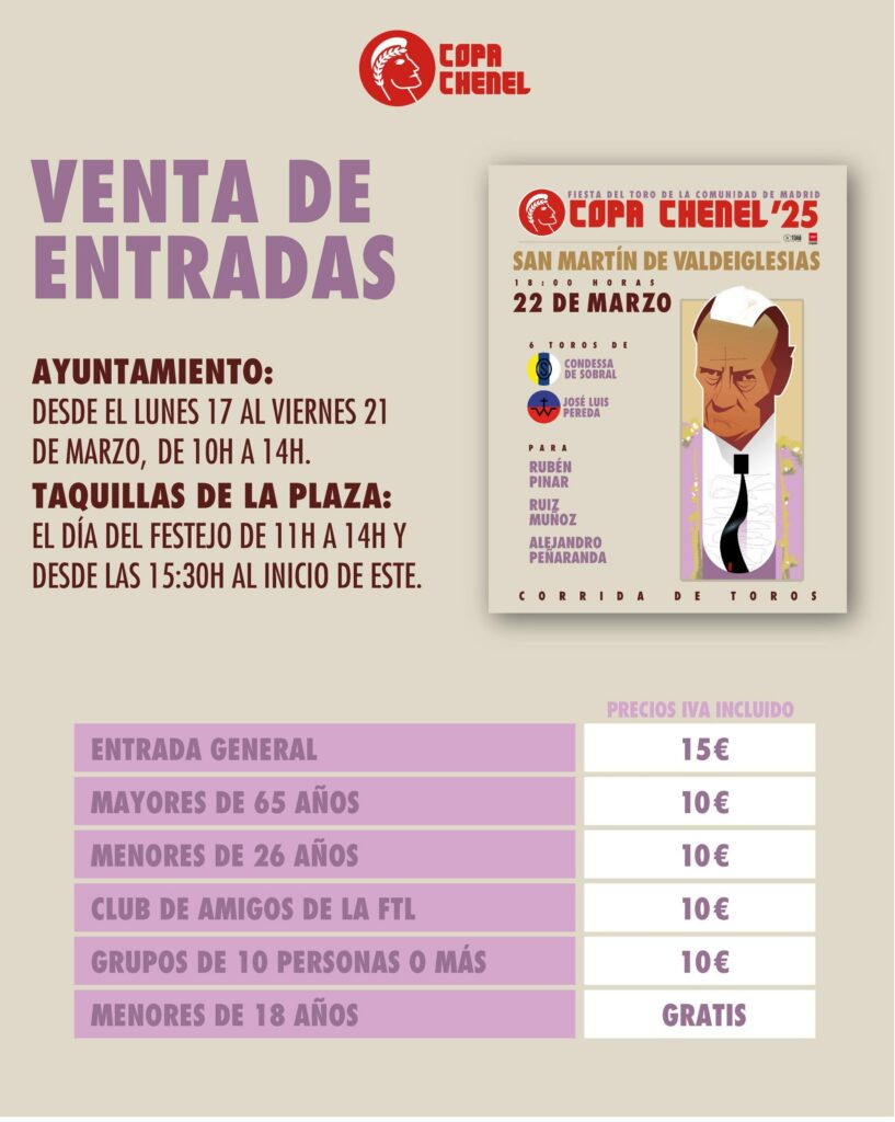Precio de las entradas: General: 15 € – Menores de 26 años, mayores de 65 años, amigos de la Fundación Toro de Lidia y grupos de más de 10 personas: 10 €. Menores de 18 años: gratis.