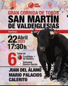Matadores: Juan del Álamo, Mario Palacios, Calerito. Ganadería: Castillero de Huebra y Salvador Gavira-García.