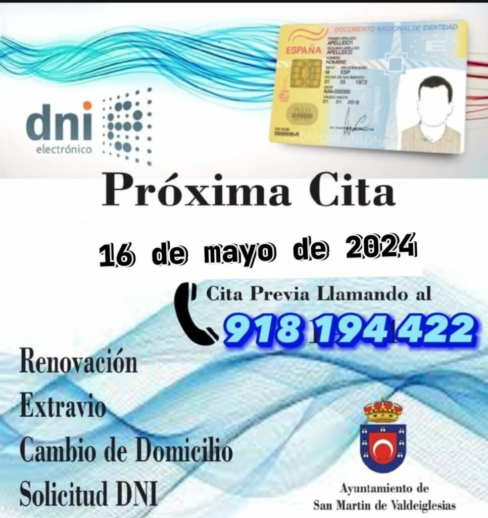 Teléfono de cita previa para la renovación del DNI: 918 194 422.