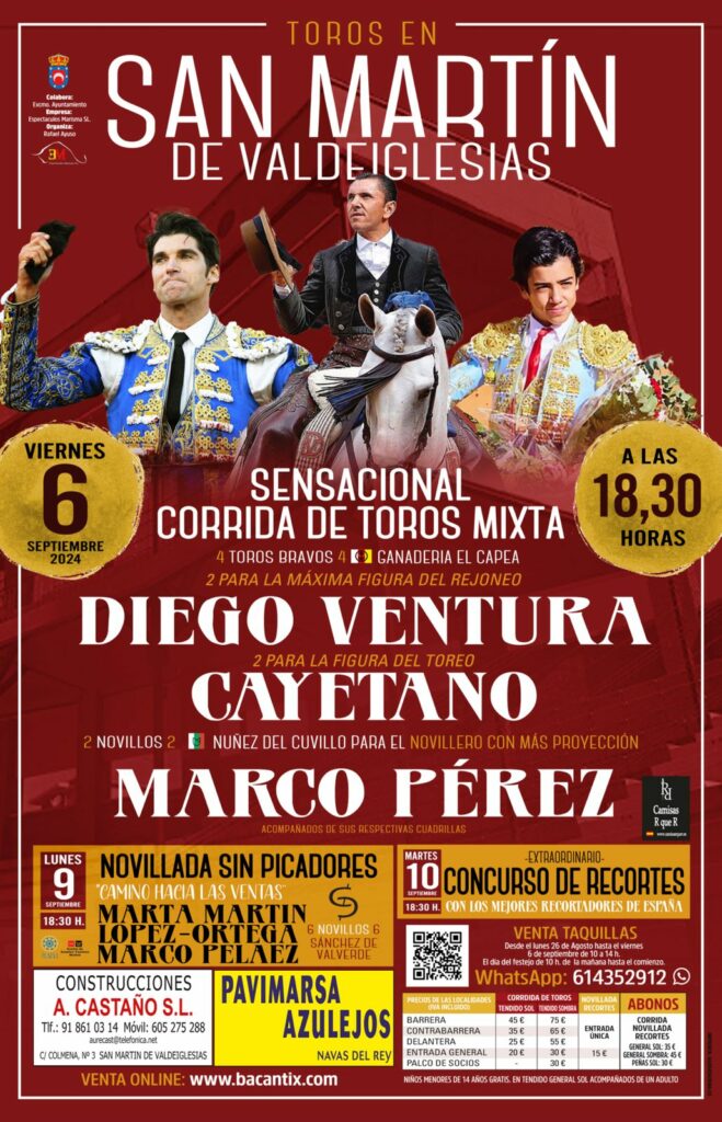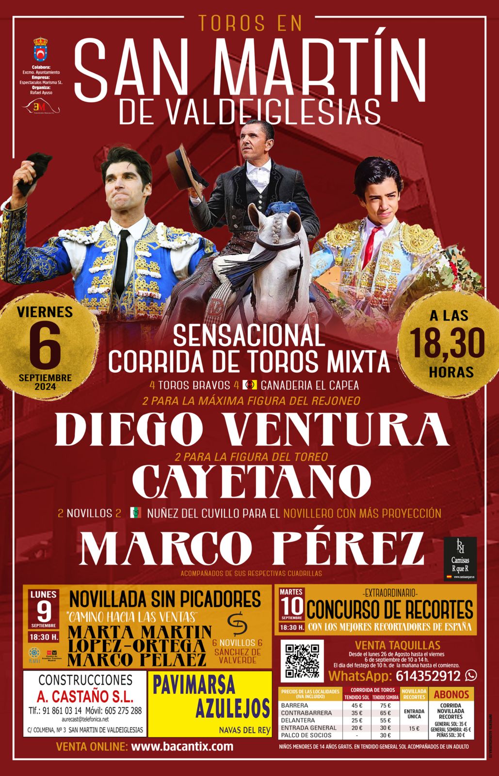 La feria se completa con la novillada: el lunes 9 de septiembre, dentro del ciclo “Camino hacia Las Ventas”, erales de Sánchez de Valverde para Marta martín, López-Ortega y Marco Peláez. Y un concurso de recortes el miércoles 10 de septiembre.
