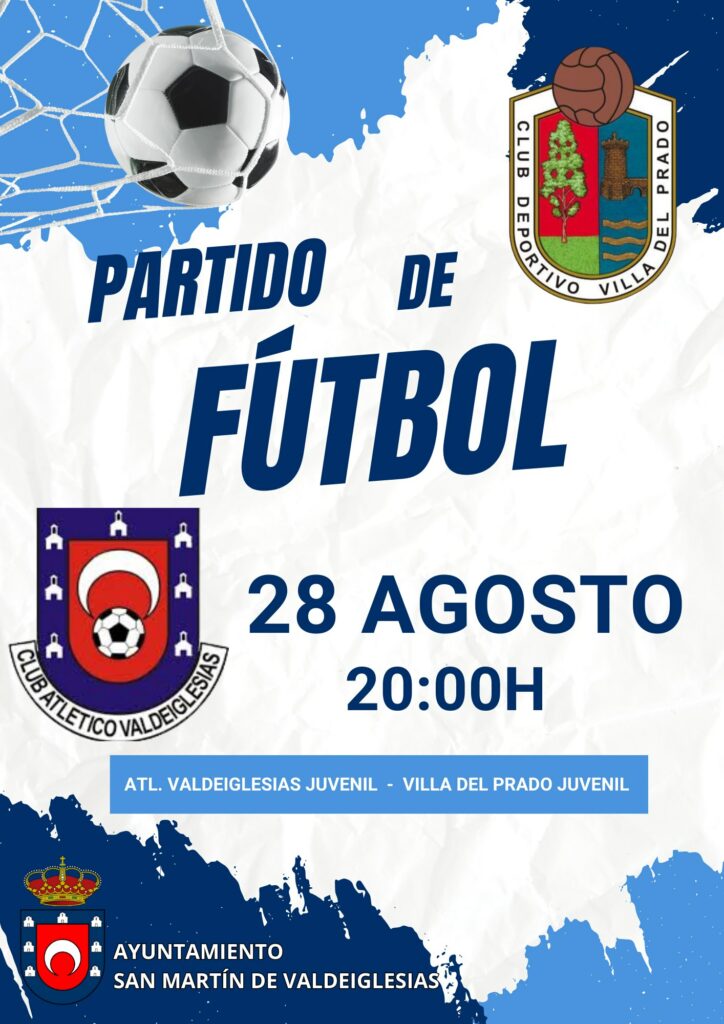 Partido de fútbol, dentro de los actos previos a las Fiestas Patronales, entre los equipos: ATLÉTICO VALDEIGLESIAS JUVENIL – VILLA DEL PRADO JUVENIL.