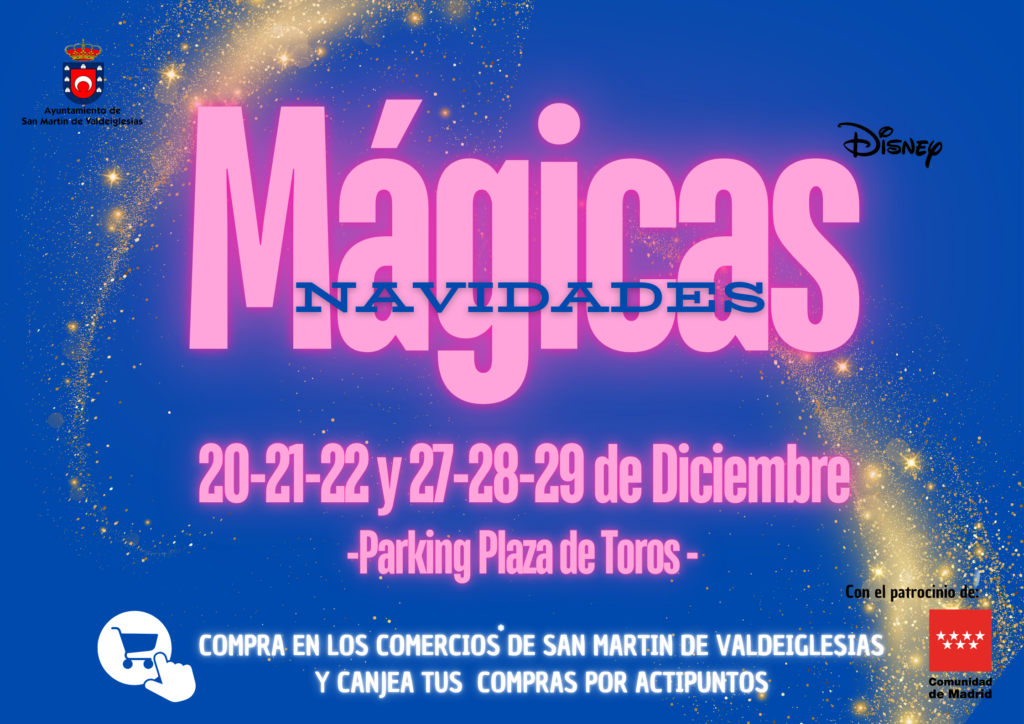 - Mágicas Navidades Disney de 12 a 14 y de 19 a 22 h. Mágicas Navidades es un parque de atracciones para los más pequeños. A las atracciones se accede a través de «Actipuntos» que se pueden adquirir en la feria o comprando en alguno de los establecimientos de la localidad adheridos a la campaña.