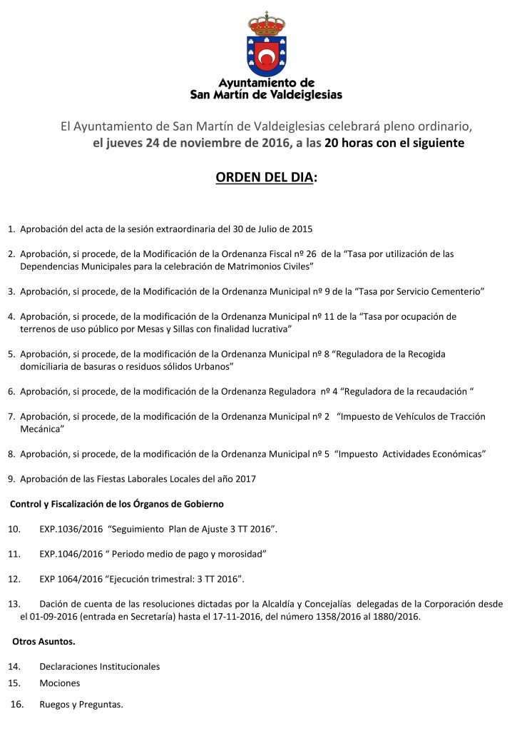 EL AYUNTAMIENTO DE SAN MARTIN DE VALDEIGLESIAS