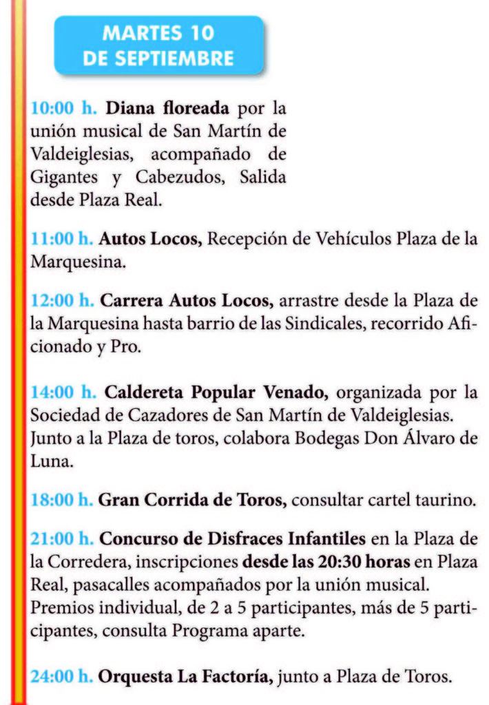 Programa diario de fiestas