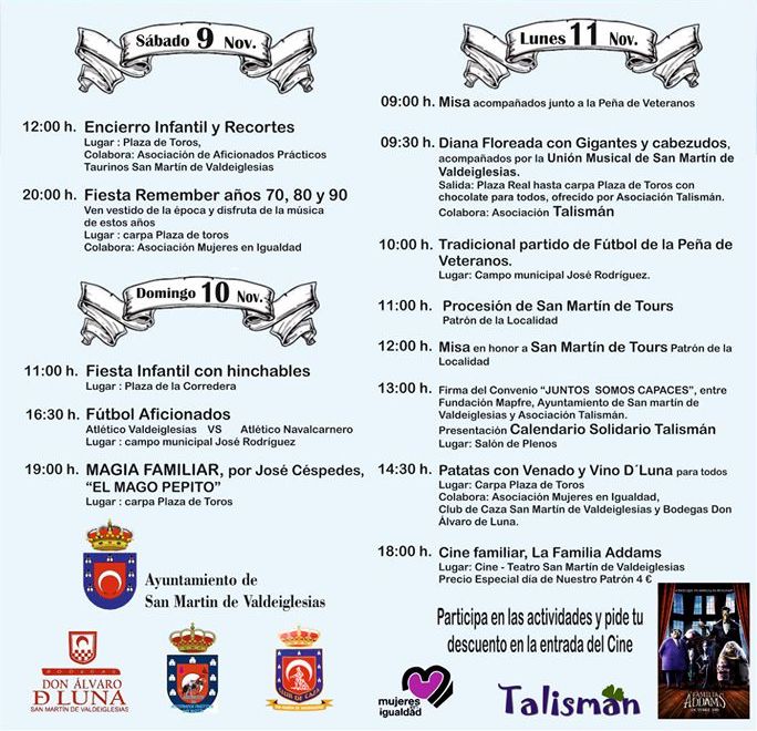 noviembre 14, 2019San Martín de Valdeiglesias celebra el 11 de noviembre la festividad de su patrón, San Martín de Tours, con el siguiente programa de actos: