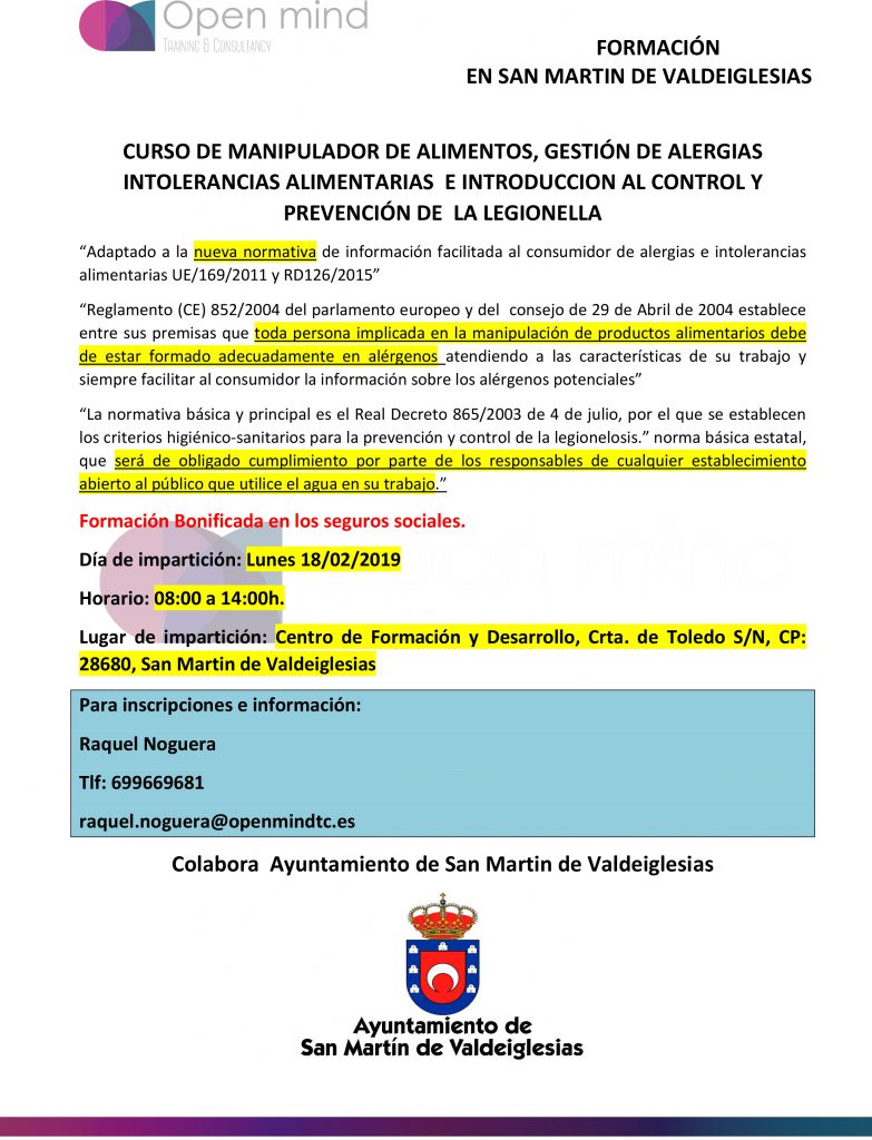 enero 31, 2019El centro de Formación y Desarrollo va a albergar en este mes de febrero dos cursos de formación: manipulación de alimentos y prevención de la legionella.