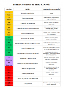 La bebeteca se desarrollará desde las 18:30 hasta las 19:30h.y es totalmente gratuita. Para participar no se requiere inscripción previa, aunque los más pequeños deberán llevar material de papelería para realizar algunos de los talleres. Los materiales están detallados en el programa anual y lo recordaremos cada semana en las redes sociales municipales.