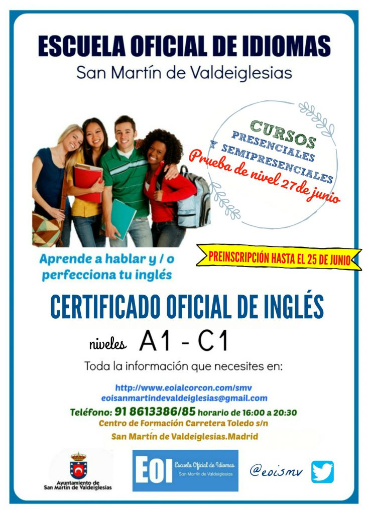 mayo 24, 2018La Escuela Oficial de Idiomas de San Martín de Valdeiglesias abre el plazo de preinscripciones para el próximo curso escolar 2018-2019.