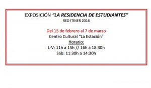 febrero 17, 2016- La Red Itiner 2016 nos trae a la Sala de Exposiciones del Centro Cultural “La Estación” una exposición para mostrarnos la historia y orígenes de la Residencia de Estudiantes de Madrid. Del 15 de febrero al 7 marzo.