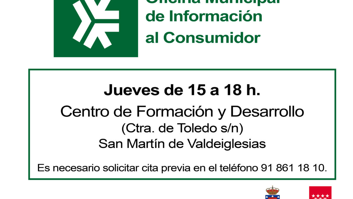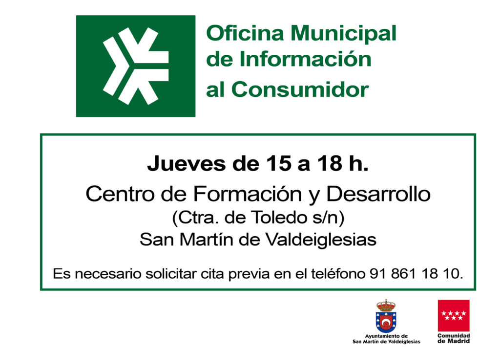 enero 13, 2020San Martín de Valdeiglesias cuenta desde hace años con un servicio que información al consumidor que, a partir de este mes de enero, cambia de día y horario de atención a los ciudadanos: serán los jueves, de 15 a 18 horas, en el centro de Formación y Desarrollo. Recordamos a los ciudadanos que hacer uso de este servicio es necesario concertar cita previa en el teléfono 91 861 18 10.