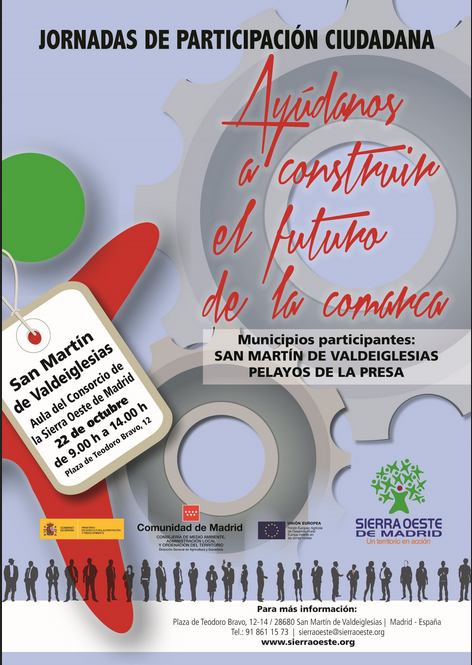 octubre 18, 2015El Consorcio de la Sierra Oeste de Madrid organiza el 22 de octubre una reunión informativa sobre las próximas Jornadas de Participación Ciudadana que están preparando. Unas jornadas que tienen como objetivo construir una comarca mejor con la ayuda de todos.