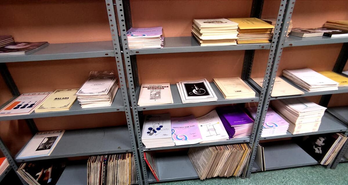 Esta Biblioteca musical podemos encontrar documentos y utensilios históricos como una maquina de escribir con notas musicales, un libro del 1903 de método completo de piano, una gran variedad de libros de historia musical y métodos de estudio, una colección de música en cintas de cassete y joyas musicales en discos de vinilo, así como los equipos necesarios para su reproducción.