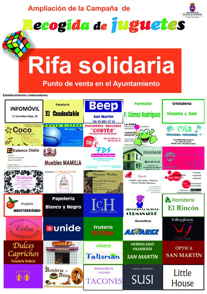 diciembre 19, 2016El Ayuntamiento de San Martín de Valdeiglesias amplía la campaña solidaria de recogida de juguetes que puso en marcha el pasado mes de noviembre, con la rifa de tres cestas, repletas de productos de alimentación, complementos, pequeños detalles, que han sido donados por comecios locales de forma desinteresada.