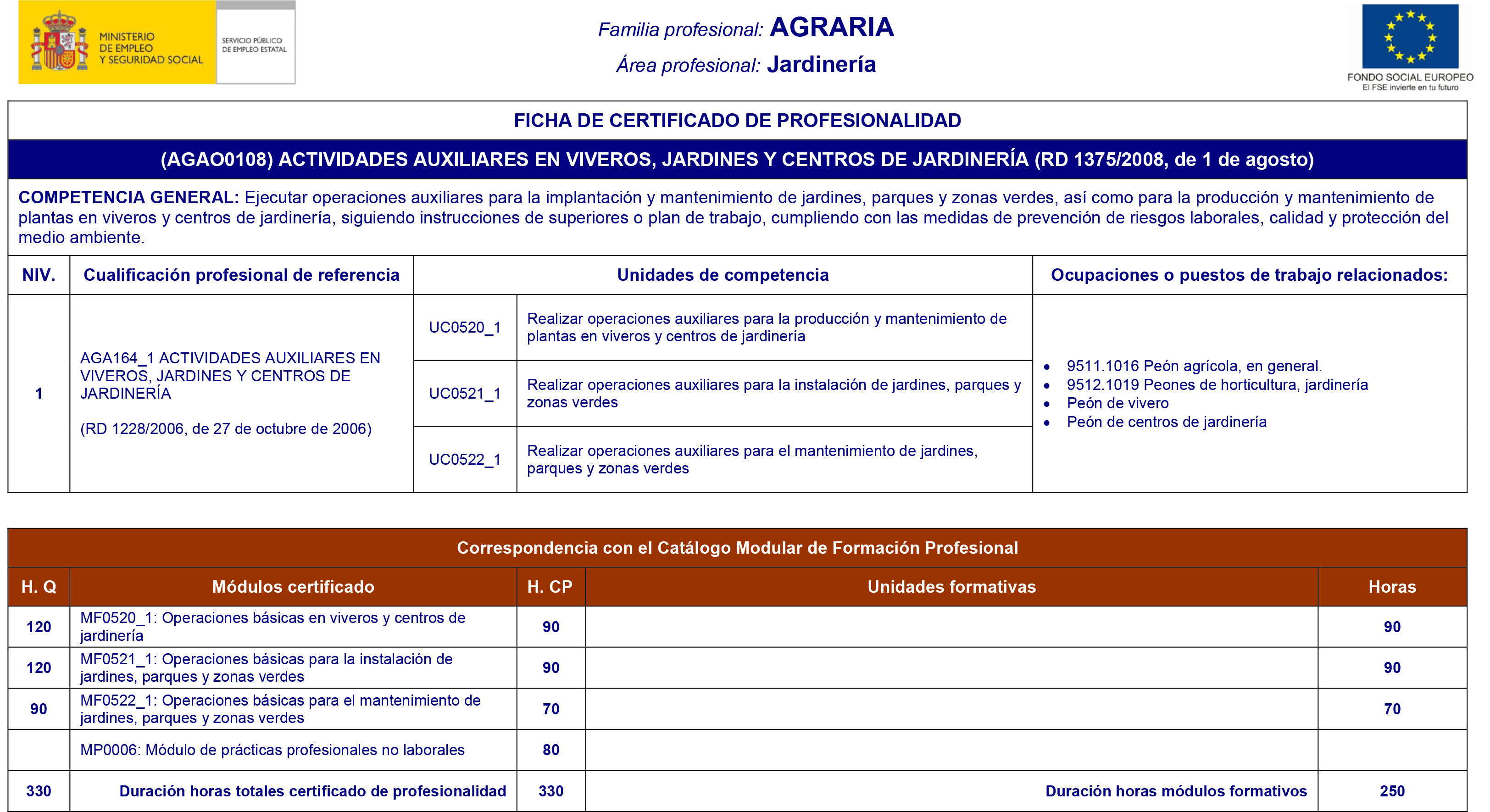 Duración: 330 h. (250 h teoría + 80 h. prácticas).