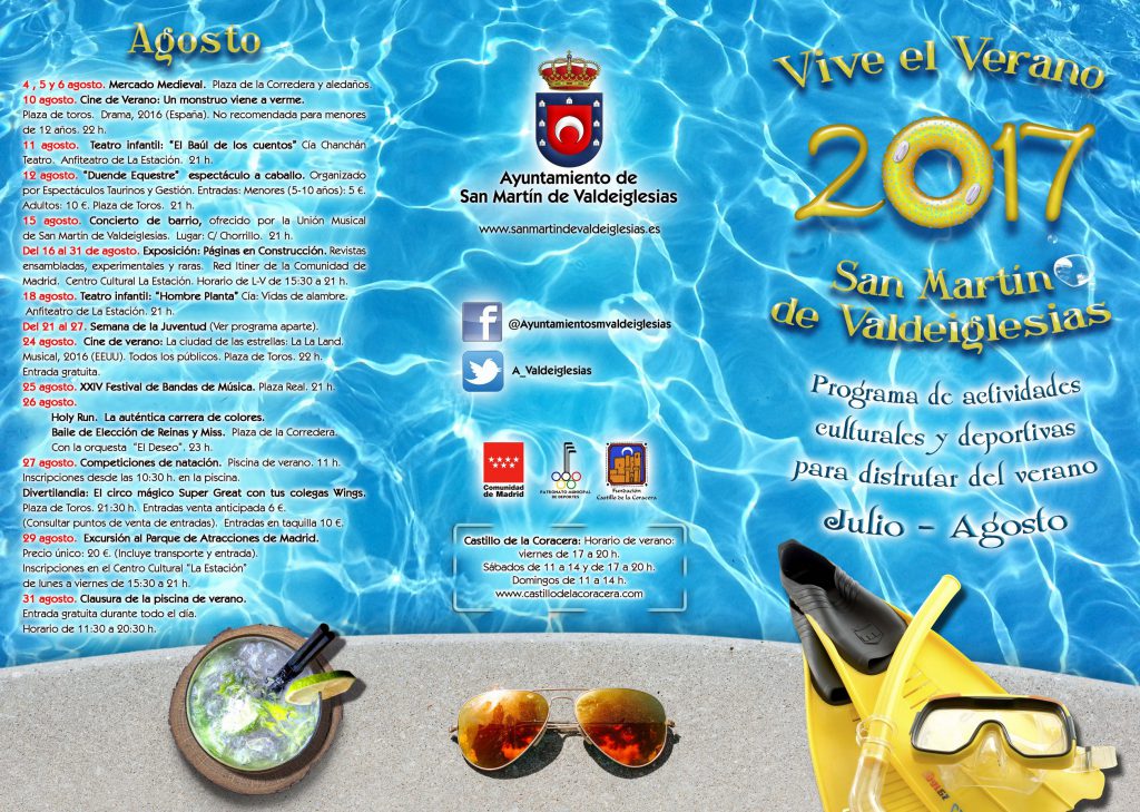 julio 4, 2017El Ayuntamiento de San Martín de Valdeiglesias ha programado para los meses de julio y agosto un completo programa de actividades que los vecinos disfruten del verano y también, para hacer má atractiva la visita a nuestra localidad.