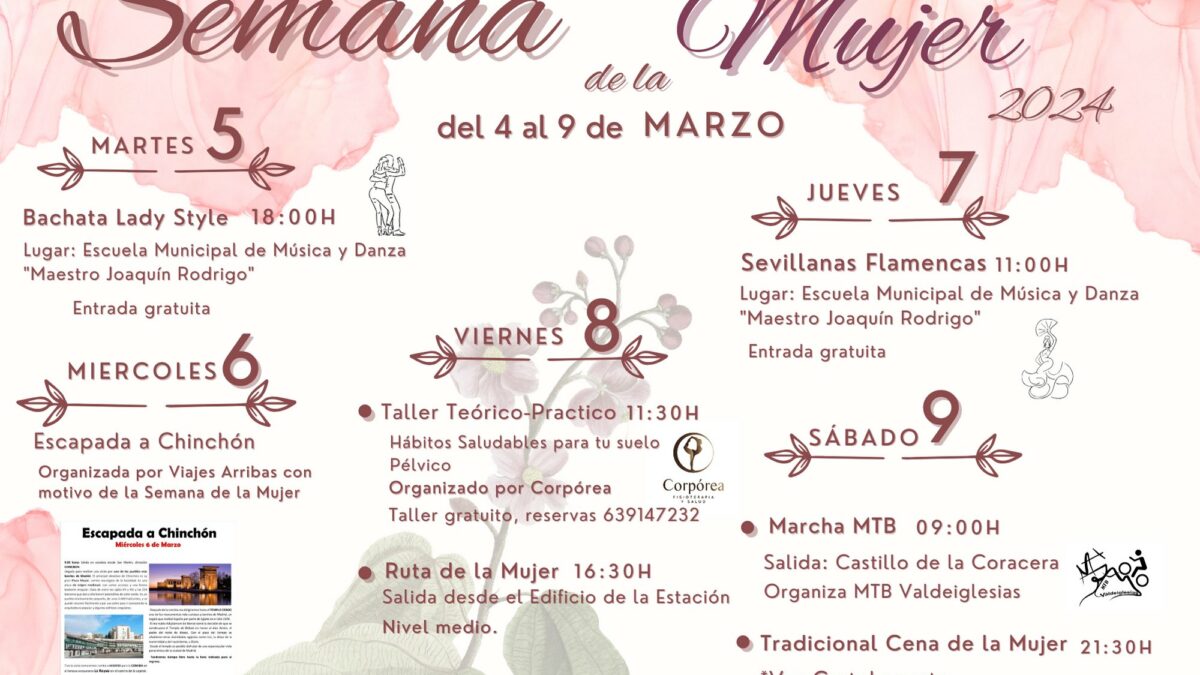 febrero 26, 2024Para conmemorar el Día Internacional de Mujer, 8 de marzo, el Ayuntamiento de San Martín de Valdeiglesias organiza la Semana de la Mujer, que se celebrará del 4 al 9 de marzo de 2024. El programa comprende actividades de ocio, para fomentar los hábitos saludables y la participación social en la localidad.