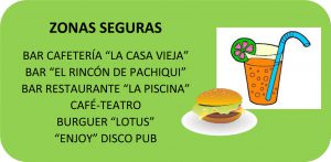 Existen zonas seguras, donde los zombies no pueden entrar y los supervivientes se pueden refugiar para reponer fuerzas, que son bares y restaurantes colaboradores donde la venta de alcohol está prohibida.