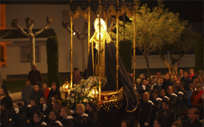 20 h.: Procesión con la imagen de Nª Sª de la Soledad. Imagen realizada en los talleres de Olot (Gerona) hacia 1940.